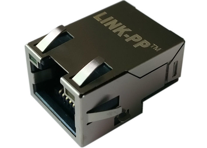 High-reliability, shielded RJ45 connector with integrated LAN transformer for 10/100Base-T applications — SMT board-edge mount, yellow-green LED, wide temperature range (-40°C to +85°C), designed for industrial and commercial networking equipment.
